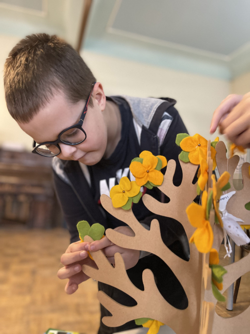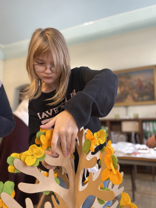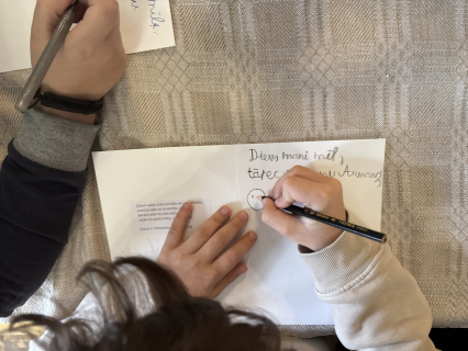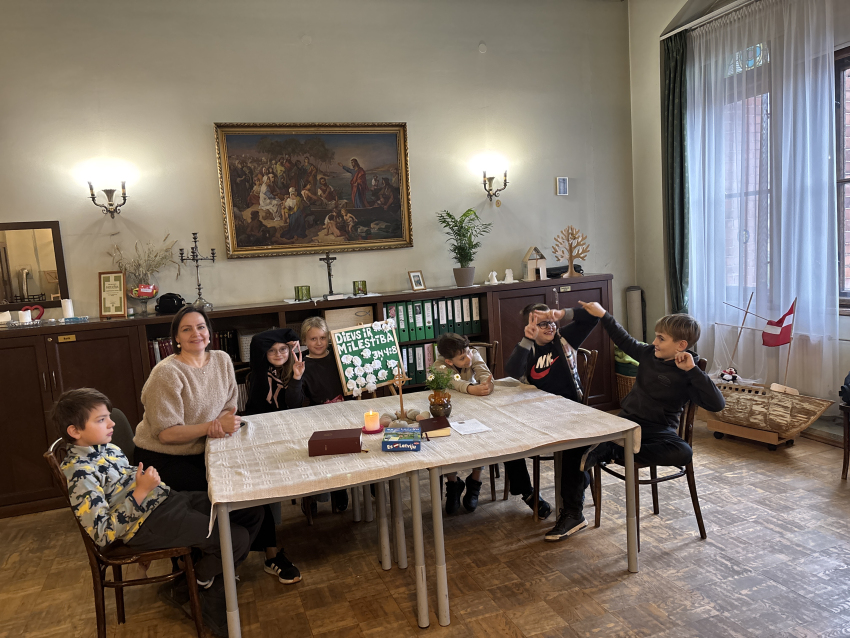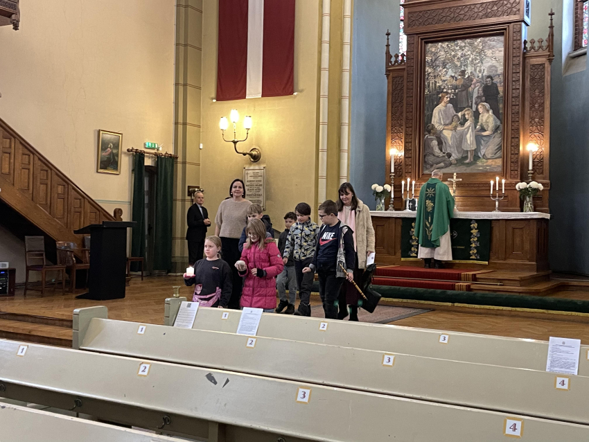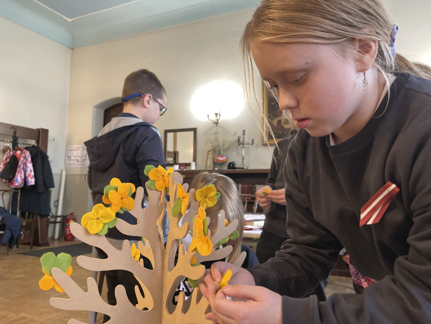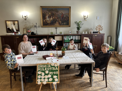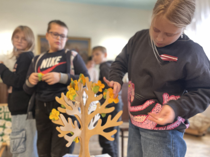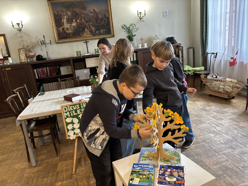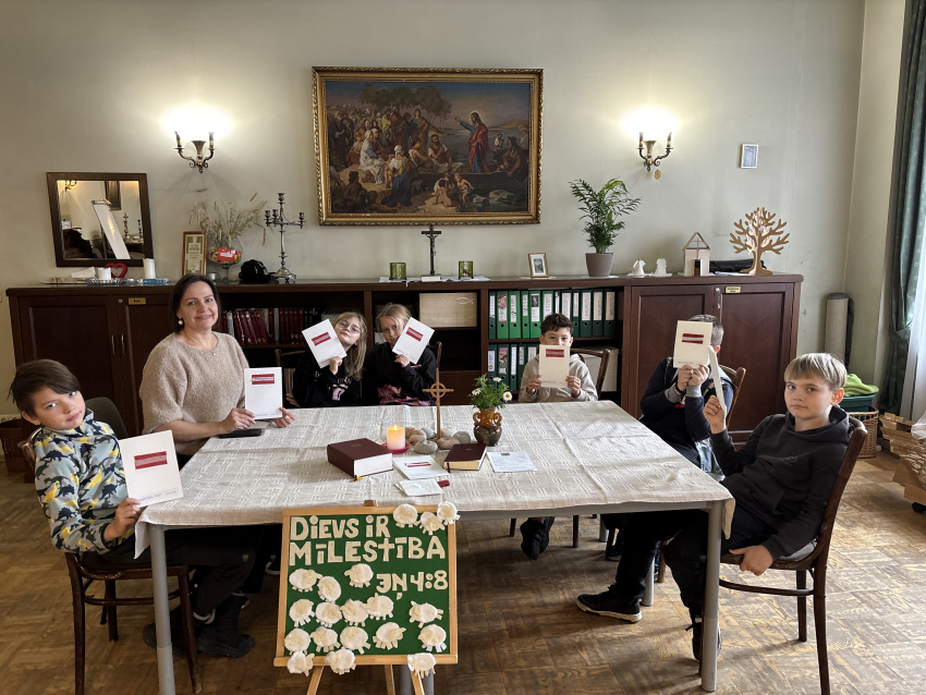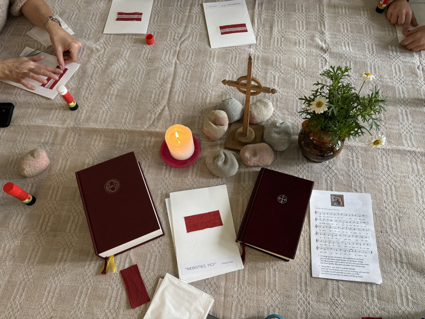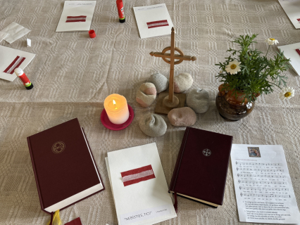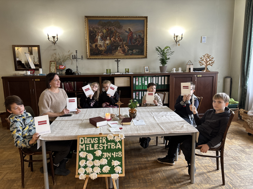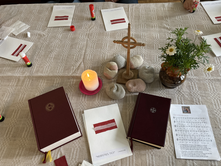 Pateicības lūgšanas par Latviju un mums visiem. Aplicējam, spēlējam sk. Ilzes izgatavoto akmentiņu spēli, klājam galdu un Sinepju graudiņa kokā uzplaukst mazie ticības ziediņi. Atceramies līdzību par Sinepju graudiņu un ticības spēku. Lai Latvija zied! Mēs lūdzam: "Dievs, svētī, Latviju!"
