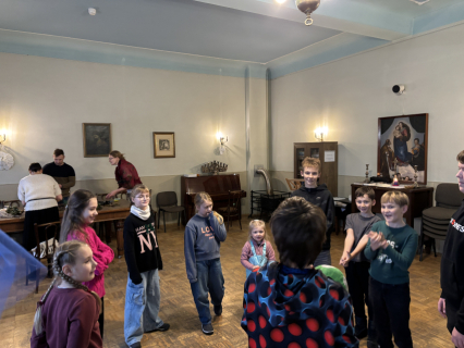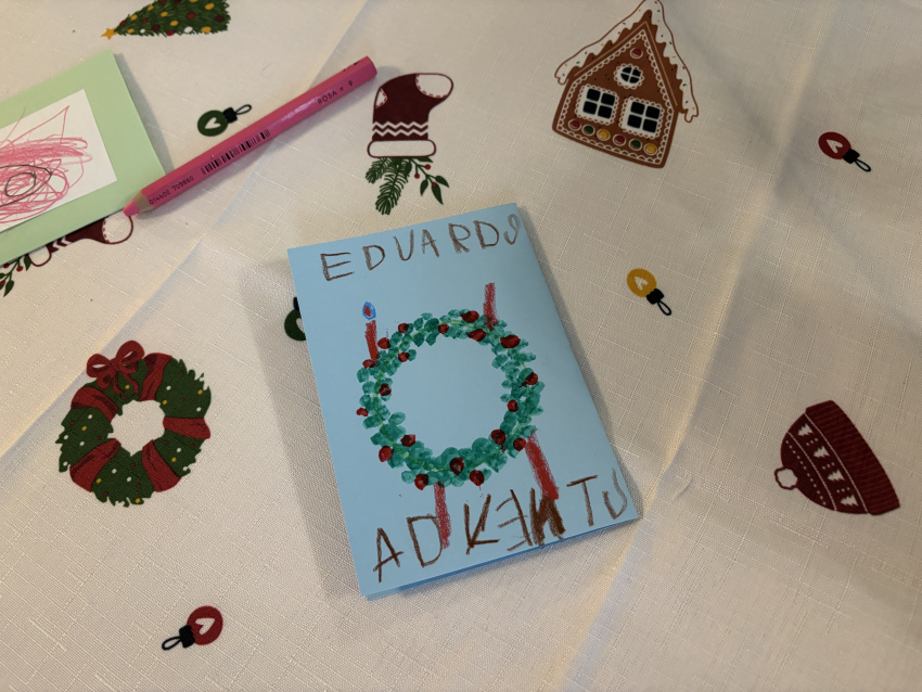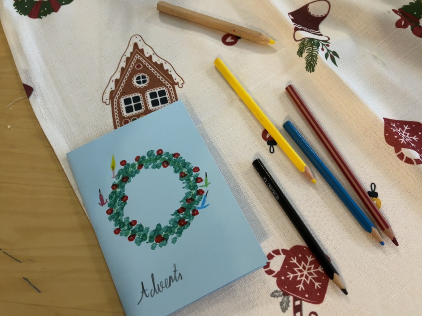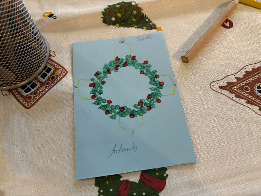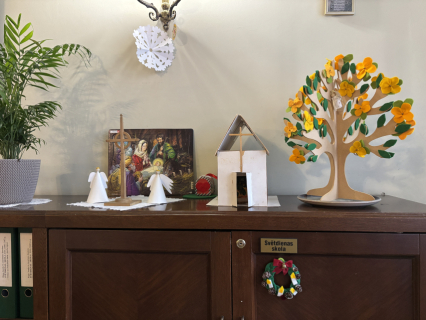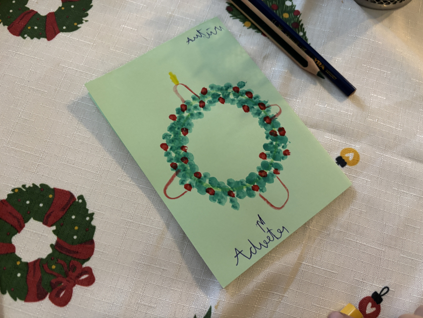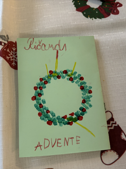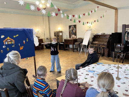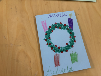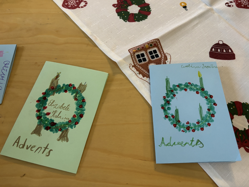 Šodien Svētdienas skoliņā kā bišu stropā! Pēc kopīgas lūgšanas un dziesmiņas, māmiņas un tēti darina Adventa vainagu no skujiņām, kastaņiem, čiekuriem, zvaigznītēm – brīnumi! Bērni klausās Bībeles lasījumu par to kā Jēzus Bērniņš piedzima un iezīmē savos Adventa vainadziņos svecītes. Elizabete spēlē flautu. Priecīgām skaņām pilnas ausis, sirsniņas un visa Baznīcas Mazā zāle. Ar piparkūku un sk. Ilzes cepto kēksiņu smaržu tiek iepriecināts katrs Baznīcā nācējs. Lai brīnišķīgs Adventa laiks! Lai Dievs svētī katru mīļo Dieva draugu! Lai piedošanas prieks, labestība un mīlestība ir ar katru!