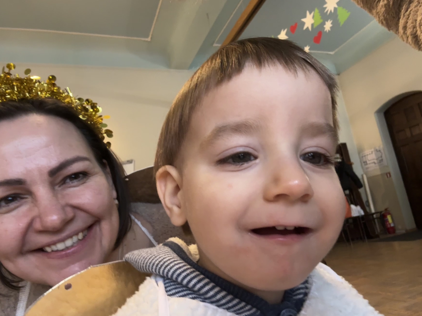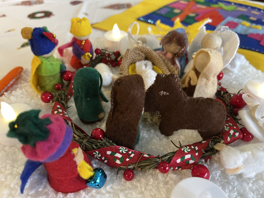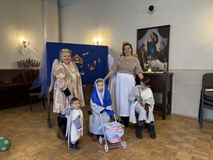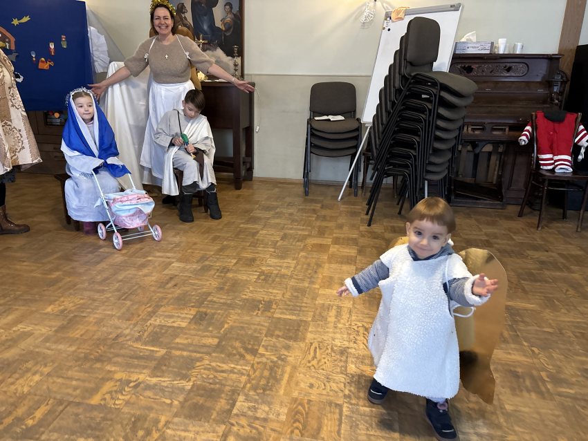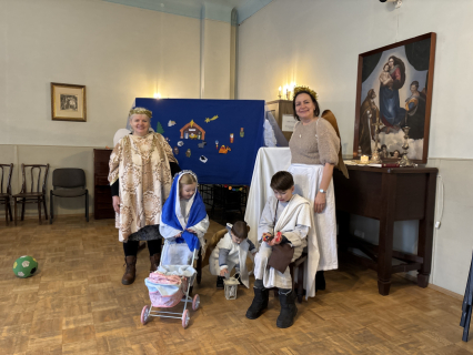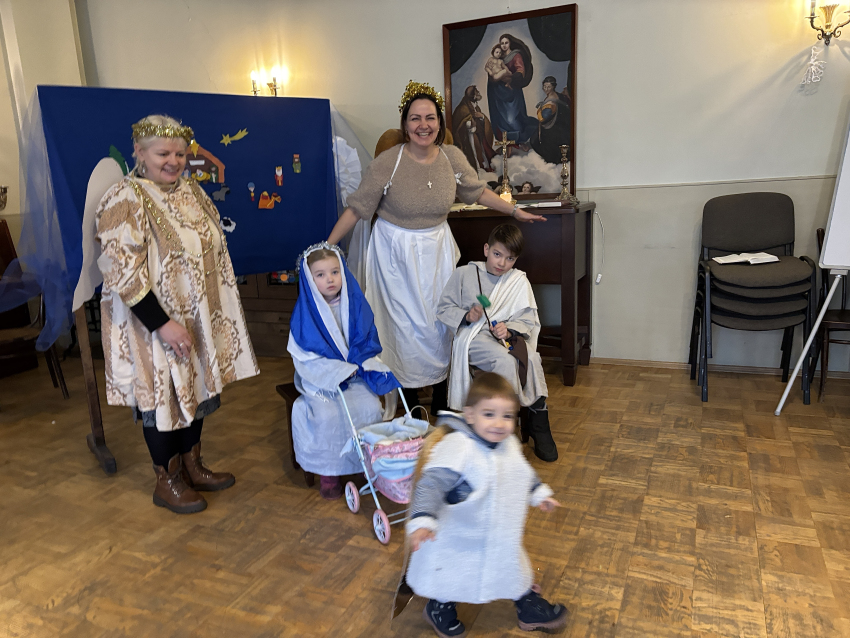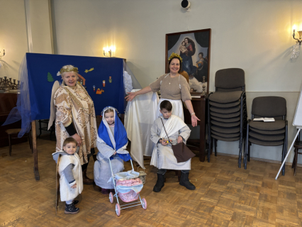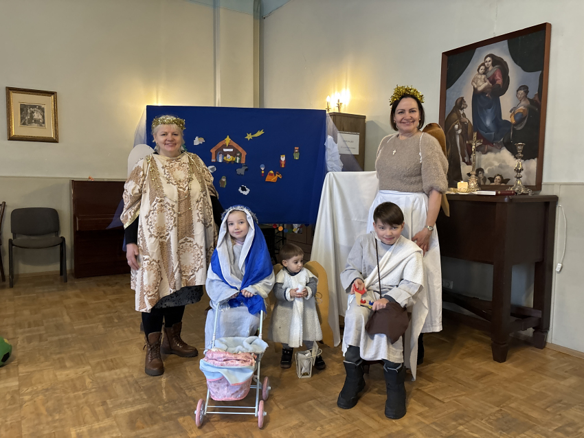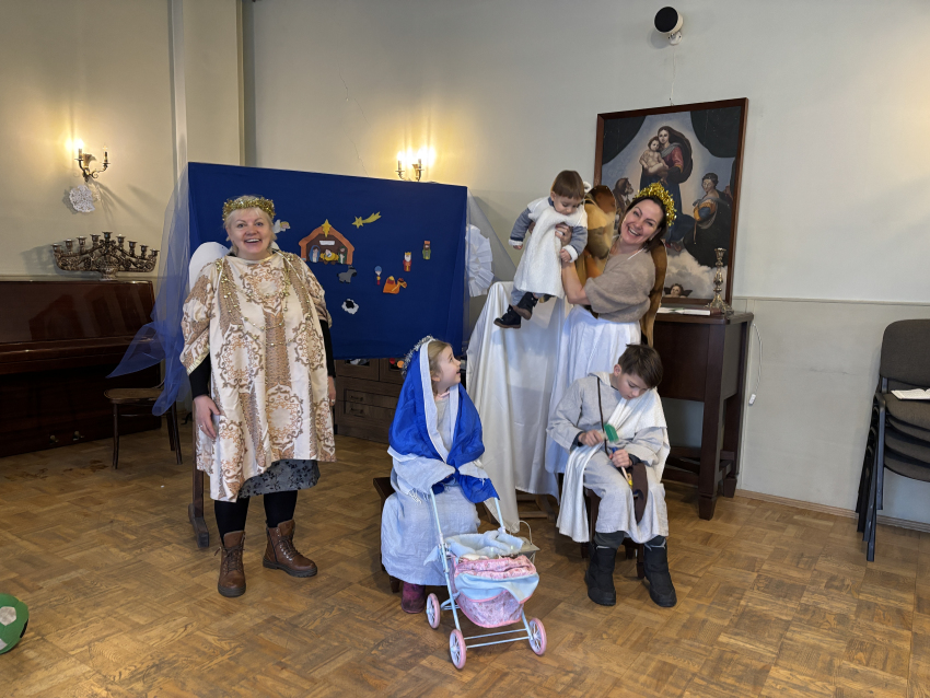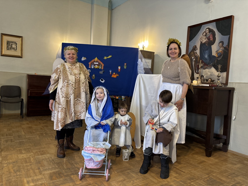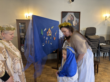 Un līksmojiet priecīgi eņģeļiem līdz: mēs mīlējam Tevi, kas autiņos tīts!