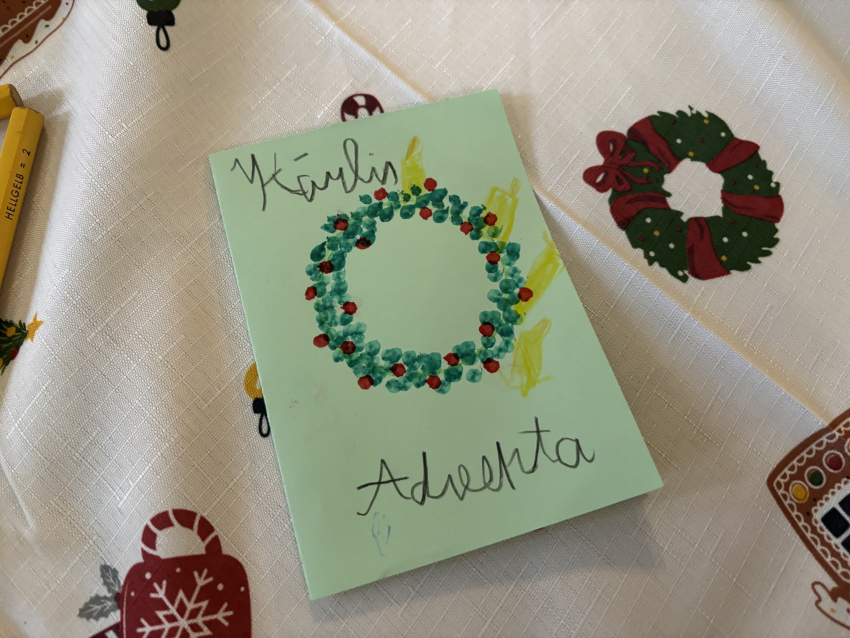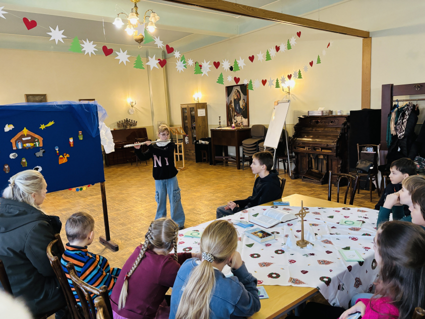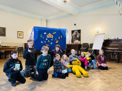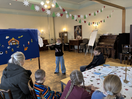 Šodien Svētdienas skoliņā kā bišu stropā! Pēc kopīgas lūgšanas un dziesmiņas, māmiņas un tēti darina Adventa vainagu no skujiņām, kastaņiem, čiekuriem, zvaigznītēm – brīnumi! Bērni klausās Bībeles lasījumu par to kā Jēzus Bērniņš piedzima un iezīmē savos Adventa vainadziņos svecītes. Elizabete spēlē flautu. Priecīgām skaņām pilnas ausis, sirsniņas un visa Baznīcas Mazā zāle. Ar piparkūku un sk. Ilzes cepto kēksiņu smaržu tiek iepriecināts katrs Baznīcā nācējs. Lai brīnišķīgs Adventa laiks! Lai Dievs svētī katru mīļo Dieva draugu! Lai piedošanas prieks, labestība un mīlestība ir ar katru!